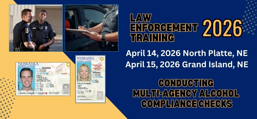 In partnership with the Nebraska Department of Transportation - Highway Safety Office, Project Extra Mile is coordinating two free Law Enforcement Trainings across the state. The trainings will focus on the enforcement of underage drinking laws through the use of multi-agency compliance checks. Law enforcement representatives, prosecutors and community coalition members are encouraged to attend.