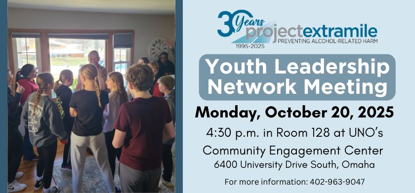 The Youth Leadership Network will meet on Monday, October 20th at 4:30 p.m. Meetings take place at the UNO Community Engagement Center (6400 University Drive South, Omaha, NE, 68182).